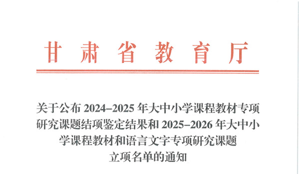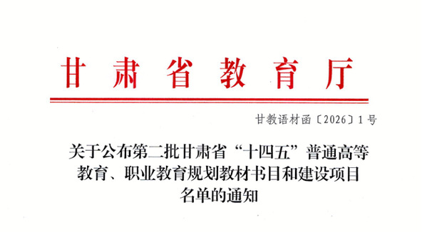 近日,甘肃省教育厅先后公布了第二批甘肃省“十四五”普通高等教育、职业教育省级规划教材书目和建设项目名单,以及2024-2025年大中小学课程教材专项研究课题结项、2025-2026年大中小学课程教材和语言文字专项研究课题立项结果。我校有3部教材获得省级规划认定、10部教材获得省级规划立项建设;5项大中小学课程教材专项研究课题顺利结项,10项大中小学课程教材和语言文字专项研究课题获批立项,充分体现了学校在教材建设、课程改革与教学研究方面取得的扎实成效。